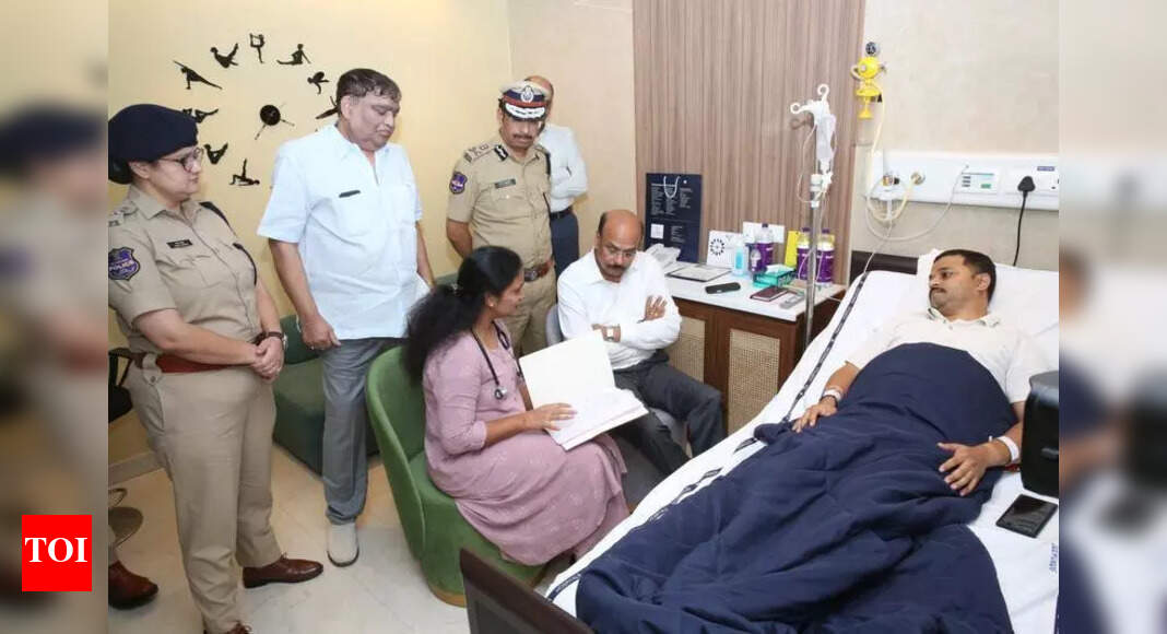 Hyderabad: Telangana DGP B Shivadhar Reddy and police commissioner VC Sajjanar visited DCP Chaitanya Kumar and constable Murthy at the private hospital on Sunday to enquire about their well-being. The top cop commended their bravery."DCP S Chaitanya Kumar and his gunman Murthy chased the main suspect for nearly 750 metres. When the suspect attempted to attack with a knife, he was fired upon," the DGP told media personnel outside the hospital.The prime suspect, Omer Ansari, has a history of crime and has been involved in 22 criminal cases. "Omer Ansari underwent surgery and is now in a stable c ...Read More >