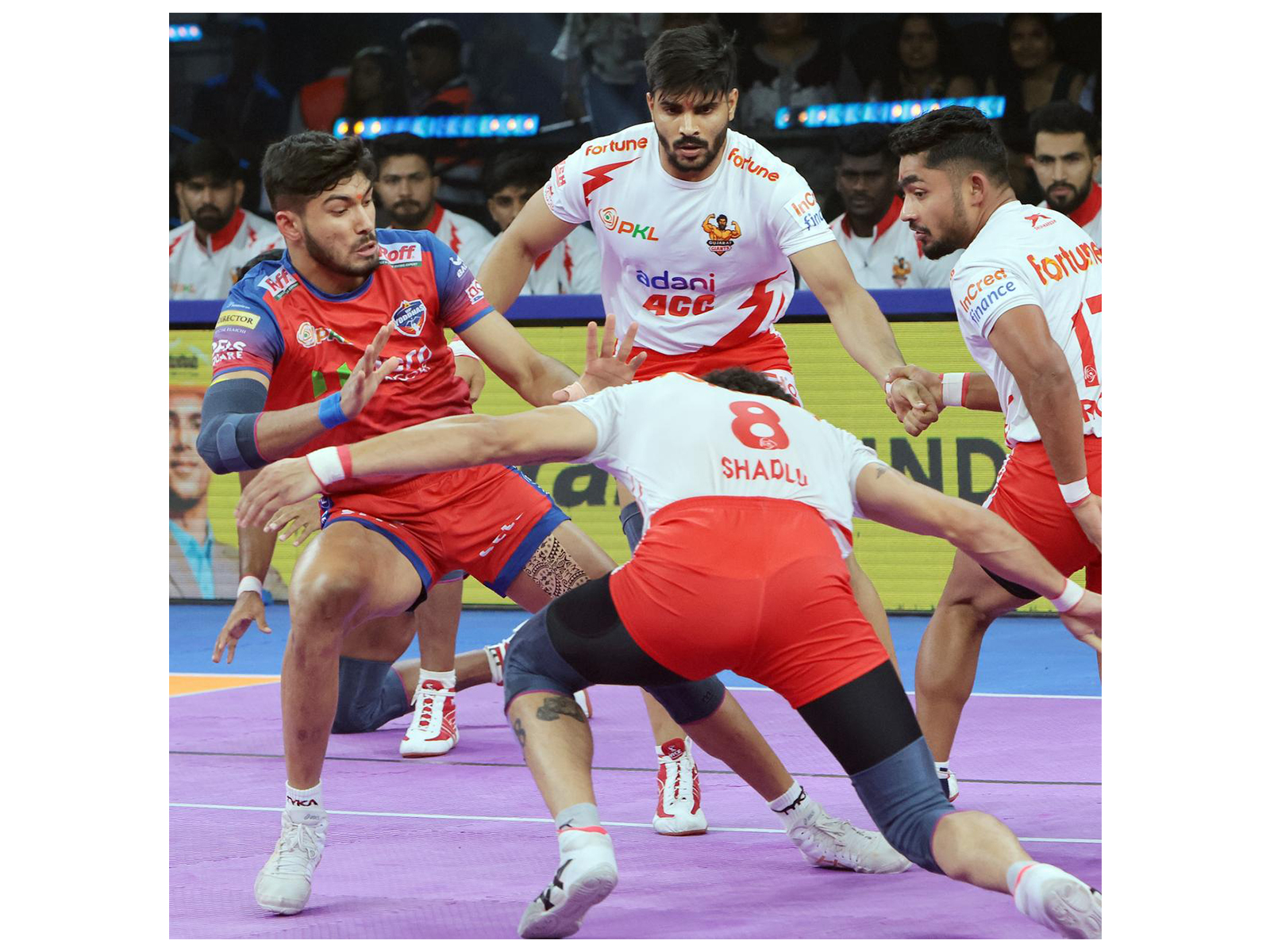 Chennai, Sep 29 (PTI) Gujarat Giants rode on fine efforts of Mohammadreza Shadloui and Ankit Dahiya to secure a comfortable 33-27 win over the UP Yoddhas in a Pro-Kabaddi League match here on Monday. The Yoddhas' Bhavani Rajput chipped in with some important points, but his efforts went in vain as the Giants clinched a much-needed victory to end their five-match losing streak. The Yoddhas struck first to take the lead, but the Giants quickly responded to make it 1-1. The Yoddhas regained momentum with a two-point cushion and stretched it to 4-1 before Harish's successful raid cut the gap to ...Read More >