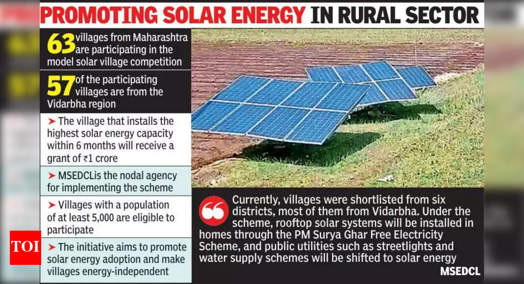 Nagpur: As many as 63 villages across Maharashtra will be vying for the model solar village tag. The govt has launched the initiative to establish one model solar village in every district of the country under the PM Surya Ghar Free Electricity Scheme. Notably, 57 of the 63 villages picked from Maharashtra belong to the Vidarbha region. The village that installs the highest solar energy capacity within six months will be declared the winner and will receive a grant of Rs1 crore from the central govt. The selected villages include 26 from Akola, 15 from Buldhana, nine from Wardha, six each from ...Read More >