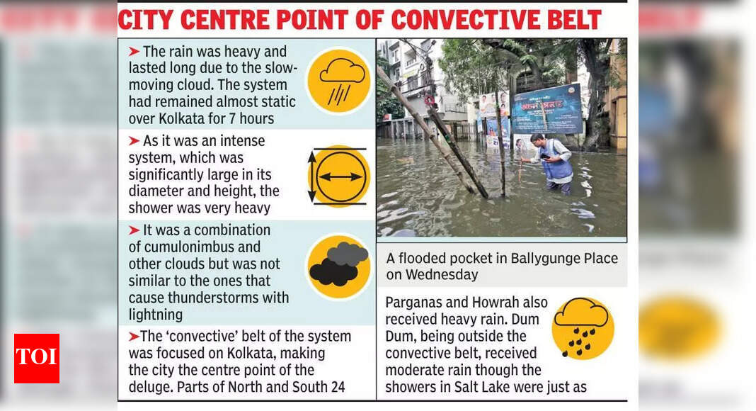 Kolkata: The gigantic cloud mass that flooded Kolkata on Tuesday with the sixth-ever single-day rain recorded in the city was the most potent non-cyclonic weather system to strike the region in five decades. It moved in from the northeast Bay of Bengal and remained static vertically above the city for about seven to eight hours, bringing in relentless and heavy downpour. The deluge on Sept 28, 1978, still holds the highest rainfall record for Kolkata, but Tuesday's phenomenon was more potent than ...Read More >