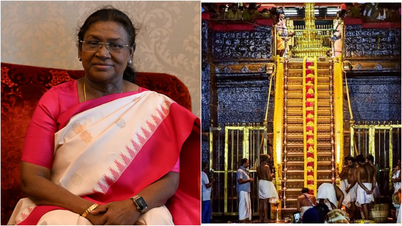 President Droupadi Murmu on Wednesday offered prayers at the Lord Ayyappa temple in Sabarimala in Pathanamthitta. IMAGE: President Droupadi Murmu offeres prayers at the Lord Ayyappa temple in Sabarimala. Photograph: Courtesy @BJMM4Kerala/X President Murmu is the first woman head of state to visit the Lord Ayyappa shrine at Sabarimala for offering prayers. She is also the second president to visit the shrine as before her, former President V V Giri had visited Sabarimala in the 1970s and had tr ...Read More >