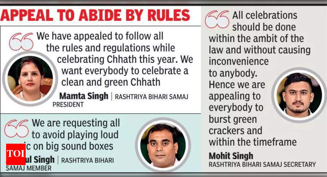 Kolkata: With the city still reeling from incidents of violence and noise pollution during Diwali and Kali Puja, community elders have appealed for a clean and green Chhath Puja this year. Several organisations representing residents of Bihar and Uttar Pradesh in Kolkata have urged devotees to refrain from bursting illegal crackers, playing loud music, or polluting water bodies during the festival.Mamta Singh, president of the Rashtriya Bihari Samaj, said her organisation had appealed to all members to strictly follow the administration's guidelines. "We have appealed to follow all the rules a ...Read More >