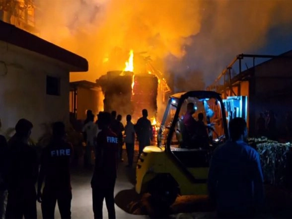 Valsad (Gujarat) [India], October 24 (ANI): A massive fire broke out at a paper mill in Valsad, Gujarat, on early Friday morning. According to officials, there were no reported casualties from the incident. The officials also stated that 80 pc of the fire has been brought under control. Also Read | Did India's Manika Vishwakarma Win Miss Universe 2025 Title? Fake News Circulated Online With Old Video of Miss Universe 2021 Winner Harnaaz Sandhu. Fire officer BG Chawda said "We received a call after 11.30 pm that there was a fire at Rama Paper Mill. Five of our vehicles reached here and we st ...Read More >