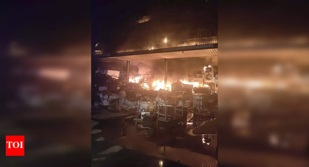 Gurgaon: A fire destroyed an electronic scrap warehouse in Rathiwas village, Manesar. Fire officials received a call at 7.25pm, and 14 fire tenders were deployed.The fire could not be contained even after 20 hours as electronic items, including refrigerators, ACs, and compressors, began to explode."It was a scrap warehouse of old vehicles, refrigerators, ACs, and electronic goods in Rathiwas. Thousands of vehicle compressors, oil extracted from vehicles, diesel, petrol, rubber, fibre, plastic, and other flammable materials were kept here, due to which the fire spread rapidly," an officer added ...Read More >