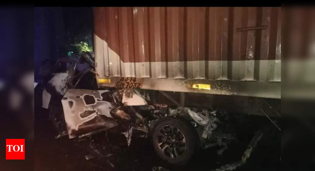 New Delhi: Two cousins on their way to Murthal for dinner died after their SUV collided with a truck and caught fire in outer Delhi's Rani Bagh on Thursday. Police have caught the truck driver. The deceased were identified as Henry (20) and Dipanshu Chandela (21). They were BBA students. Both were from west Delhi. Henry's family lives in Meera Bagh and Dipanshu in Paschim Vihar. The fire department, which got a call around 3.13 am, sent three fire tenders and 18 fighters to the site near Madhuban ...Read More >