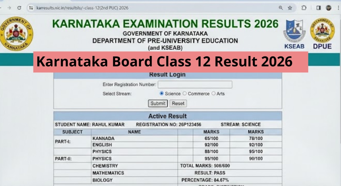 The Karnataka School Examination and Assessment Board (KSEAB) has declared the 2nd PUC (Pre-University Certificate) Results for 2026. The Class 12 results for all streams- Science, Commerce and Arts have been announced. The KSEAB PUC 2 results can be checked by candidates on the official website of Karnataka Results at karresults.nic.in. Karnataka 2nd PUC Results 2026 LIVE Updates The Class 12 examinations for this academic cycle were conducted between February 28 and March 17, 2026. The exams w ...Read More >