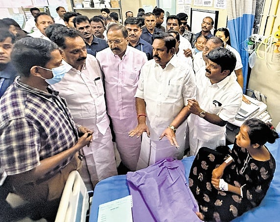 SALEM: AIADMK general secretary Edappadi K Palaniswami on Sunday visited the Karur Government Medical College and Hospital, where he paid homage to the 40 people who lost their lives in the stampede at TVK leader Vijay's campaign rally the previous evening. He also met those undergoing treatment and consoled their families. Speaking to reporters after his visit, Palaniswami expressed profound grief, calling it one of the worst tragedies in Indian political history. "I do not wish to blame anyone at this moment. This is a painful and shocking situation," he said. Palaniswami, however, alleged ...Read More >